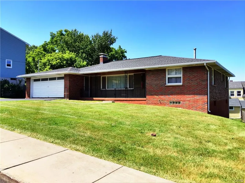 This 1500 square foot mid-century ranch in Solvay has been meticulously maintained and cared for by the same family since 1959! It offers 3 bedrooms, 1.5 baths, a generously sized living room with stone fireplace, formal dining room and a large eat in kitchen with plenty of cabinet and counter space. The hardwood floors throughout the home have been beautifully preserved as have the original Wood Mode kitchen cabinets. The walkout basement is dry, partially finished and has roughed in bathroom plumbing; 9 foot ceilings and access to the backyard make it perfect for additional future living space. 8 year old roof with transferable warranty and Solvay Electric.