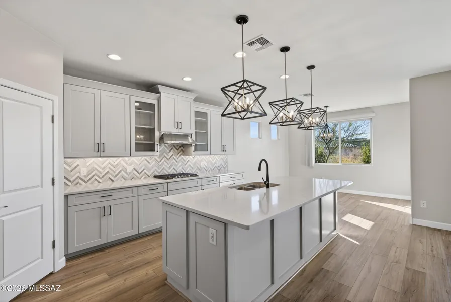 Seller is offering a $5,000 seller concession at closing with an acceptable offer. Discover luxurious, modern living in this like-new home located in the desirable Saguaro Viejos neighborhood. Built in 2023, this 3-bedroom, 2-bath residence, plus a den/bonus room, offers an unparalleled blend of style & function. Step inside to an open-concept layout designed for the ultimate lifestyle. The gourmet chef's kitchen is a true showpiece, featuring top-of-the-line SS appliances & a custom tile backsplash, perfect for entertaining or daily culinary creations. The private primary suite is a serene retreat, boasting a luxurious super shower, dual sinks & an exceptionally large walk-in closet. Garage has a 4' extension with hobby space and storage.
