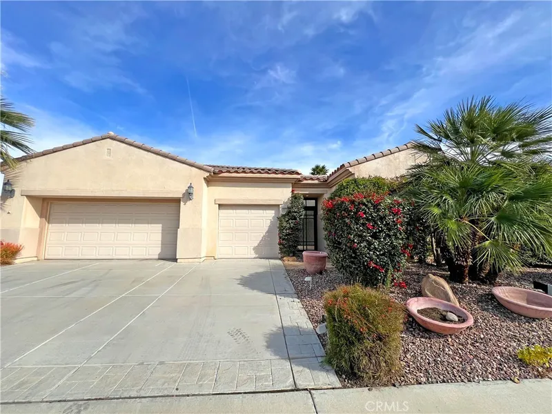 Spectacular price adjustment! 55+ Community with golf course, water & mountain views! A custom iron/glass courtyard entry door leads you to a private courtyard & Casita! This is a 3 bedroom (plus den), 3 bathrooms, that also offers a saltwater pool & spa. This home is custom decorated with modern & glamorous design throughout. The living room has a beautifully designed floor to ceiling fireplace, built in cabinets with glass shelves and views of the pool/spa & golf course. This space is open to a dining area & kitchen with walk in pantry, lots of storage & entertaining space. The island is all glitz & glamour to match the backsplash. Off the kitchen you will find a butler bar with more storage & another pantry. The formal dining room is spacious to enjoy many friends and memories. There is one bedroom with full bathroom, den, a separate laundry & a powder room. The master suite is large, has a slider to extended patio. The master bathroom is large, includes dual sinks, makeup vanity, soaking tub, large shower, separate toilet room & a custom walk in closet. A great space for your company to enjoy their visits is in the separate Casita with a private bathroom. The 3 car garage has plenty parking, room for a golf cart & lots of storage. The back patio is perfect for enjoying those cool desert evenings, relaxing in the spa & in the early morning hours, watching the birds & golfers . When the sun is high, enjoy a float in the salt water pool, with spa and waterfalls. There is a built in BBQ island and covered patio. The Sun City Shadow Hills HOA amenities offer something for everyone. Guarded gate shacks offer security so you can enjoy your private community oasis! This home offers endless features that are Palm Spring influenced. Nearby you can enjoy shopping, fine dining, hikes and much more.