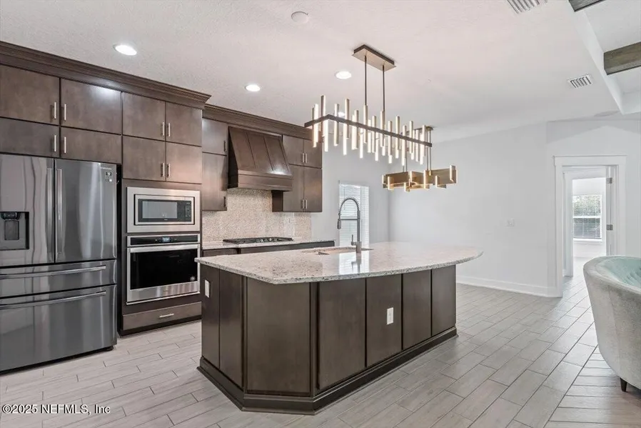 SPECTACULAR 6 Bedroom 4 Bath home w/ double garage located in St Johns County in desired BEACON LAKE COMMUNITY! This Beautiful Home & Community have so much to offer! See document tab for additional info! Home features extended covered porch, spacious livingroom with open concept, architectural details, exposed beams & surround sound system. Exquisite lighting sets the stage for relaxing or cooking in the awe-inspiring kitchen with center island, quartz countertops, limestone back splash & walk-in pantry. The guest suite or in-law quarters is conveniently located just off the kitchen with an eye catching tray ceiling. The large master suite features a bay window, dream bathroom and custom california closets is located on the 1st floor along with the other 4 bedrooms of which one includes a Murphy Bed w/ Home Office System. The soothing 6th Bedroom is upstairs & features tray ceiling, cal...