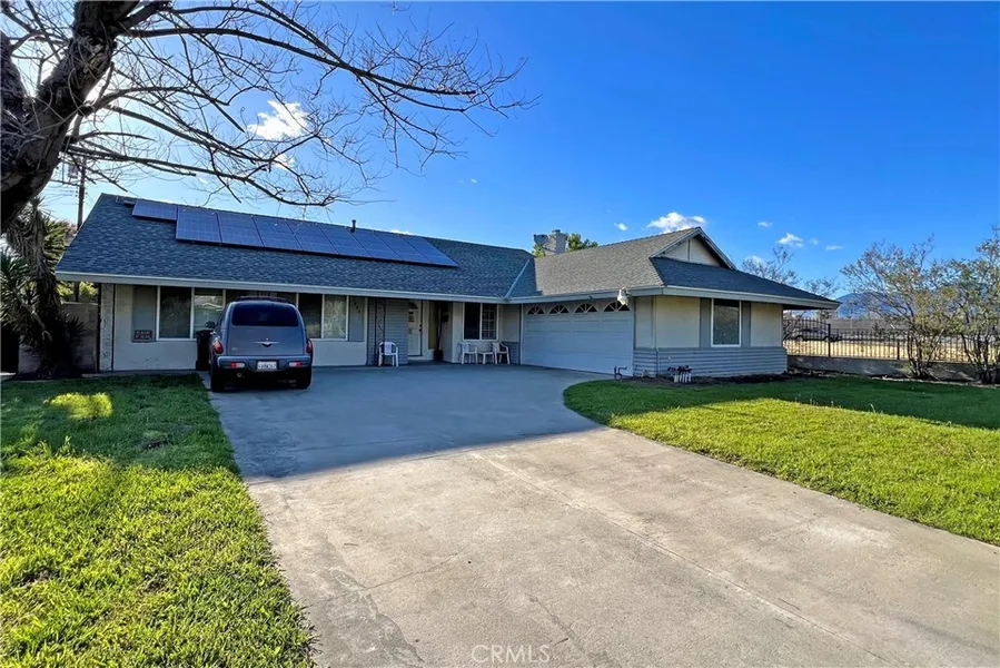 Great 3 bedroom, 2 bathroom, single story home with lots of potential. Enter past the motorized gate to a large driveway with ample parking. When you enter the home you will find a living room with large windows and a fireplace. The spacious dining room is adjacent to the living room. The kitchen has plenty of storage and counter top space. Off the kitchen is the centrally located family room with access to the large enclosed patio. There is a separate laundry room with additional storage space. The master bedroom has a slider that opens to an enclosed patio with a private above ground hot tub. The master bath has a walk in shower. There are also two additional bedrooms and a full bathroom. The property has amazing views of the mountains and currently a neighbor on only one side. Close to schools, dining, shopping & access to the 210 freeway.
