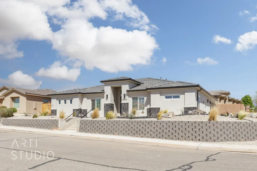 Welcome to this exquisite, modern residence in the heart of St. George, UT. Located at 2643 E 380 N, this stunning home features 4 bedrooms and 2.5 bathrooms across a spacious single-level layout. Recently constructed, the property boasts contemporary design and high-end finishes, including a gourmet kitchen with sleek cabinetry, stainless steel appliances, and a large island—perfect for entertaining. The open floor plan flows beautifully from the kitchen into the cozy living area, complete with a stylish fireplace. Elegant bathrooms feature modern fixtures and tile work, creating a spa-like feel. Generous bedrooms offer ample natural light and storage. Outdoors, enjoy a serene backyard with a covered patio, ideal for relaxing and enjoying the sunny St. George weather. This home embodies luxurious living in a desirable location, providing both comfort and sophistication. Don't miss the o...