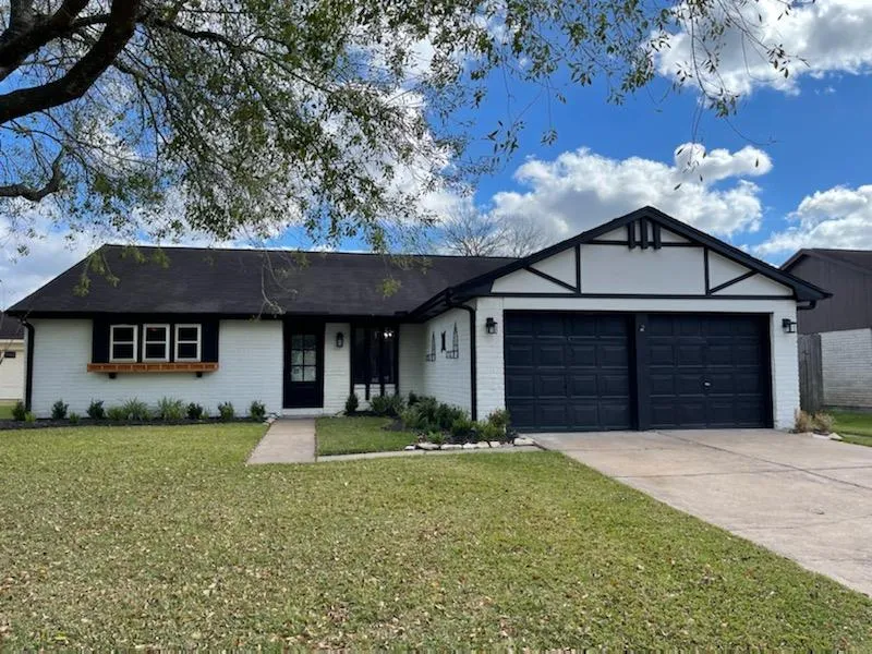 Remarkable remodeled 4 bedroom home in Friendswood ISD! Renovations include painted exterior brick with custom window planter box and Seamless gutters. Updated landscape with mature trees that adds the perfect curb appeal. Freshly painted inside with new LVP flooring throughout house and carpet in bedrooms. Beautiful quartz counter tops, stainless steel appliances, pantry and laundry room. Vaulted ceiling in living room with wood burning fireplace. Sliding back door leads to covered patio. Ceiling fans in all rooms, added recessed lighting. Lovely farmhouse style front door. Primary BR includes sitting area w/walk in closets. BR 2 has built in desk. No back neighbors. This home wont last long! HOUSE HAS NEVER FLOODED. Home Warranty included.