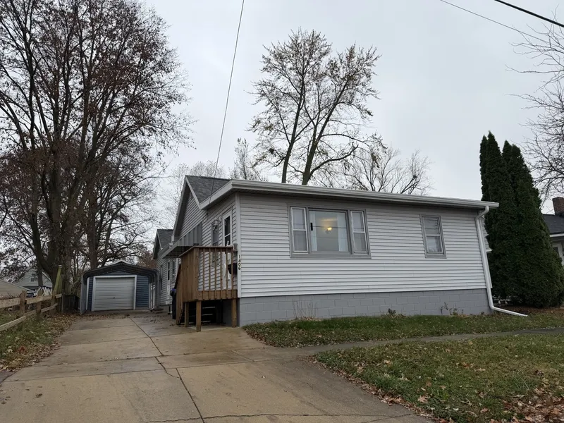 Welcome to this charming ranch style home that has been in the same family over 70 years. It features 3 bedrooms, 2 full bathrooms, a generous living room, separate dining room, and a large eat-in updated kitchen. In addition, there is a bonus room with a large picture window bringing in much natural light that is perfect as a sun room, or could be an office or a playroom, and this home has a convenient mud room off the side door. Updates in the fall of 2025 will give peace of mind for years to come - new roof on house with 6" gutters, new roof on detached garage with 5" gutters, a 90 high efficient hot water heater, a new electrical panel with circuit breakers, new luxury vinyl flooring throughout. Kitchen has been beautifully updated with cabinets and countertops, along with an island with storage and seating. The interior has been freshly painted, along with beautiful ceiling accents in the living room giving this room a stunning effect! Two full bathrooms, one with a corner jacuzzi to relax in after a long day! Exterior vinyl siding for low maintenance. Concrete driveway replaced in 2013, plus a carport for a second vehicle to protect from the weather. Additional parking is available behind the garage off of the alley. A 90 high efficient gas furnace was installed in October 2019. All windows were previously updated. Enjoy the backyard deck for morning coffee/tea or cookouts. It overlooks a large backyard with paved alley access for plenty of parking and deck also has a handicap ramp. The 18.7 acre O'Neil Park with new Aquatics Center is just down the street, and Sheridan Elementary School is across the street. Basement is unfinished, but a great place for additional storage. All appliances stay including washer and dryer which is located on the main floor.