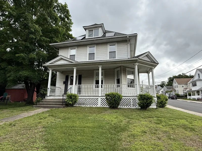Price Just Reduced - Exceptional Value! Step into charm, space, and opportunity with this antique colonial gem! With major updates already done, this home is the perfect blend of historic character and modern convenience. Featuring newer mechanicals, a newer natural gas furnace, on-demand water heater, central air, and solar panels, the big-ticket items are all taken care of-just bring your finishing touches. Inside, you'll love the welcoming stained-glass foyer, classic French doors, and hardwood floors throughout. The expansive layout includes: Spacious living areas, A sun-filled eat-in kitchen with oak cabinetry and ample counter space, Separate dining room and full bath on the main level, Upstairs, enjoy three generous bedrooms, another full bath, and a bonus office leading to a walk-up attic-ideal for storage or future expansion! Outside, relax on the covered wrap-around porch, take in the level yard, and enjoy the convenience of a 1-car garage. With city water and sewer, plus affordable energy thanks to solar, this home is both comfortable and cost-effective. A little cosmetic work will make this home truly yours-don't miss this rare opportunity to own a character-filled home with all the right updates at a reduced price. CHFA, FHA, Time to Own, VA mortgages are fine! Subject to probate approval.