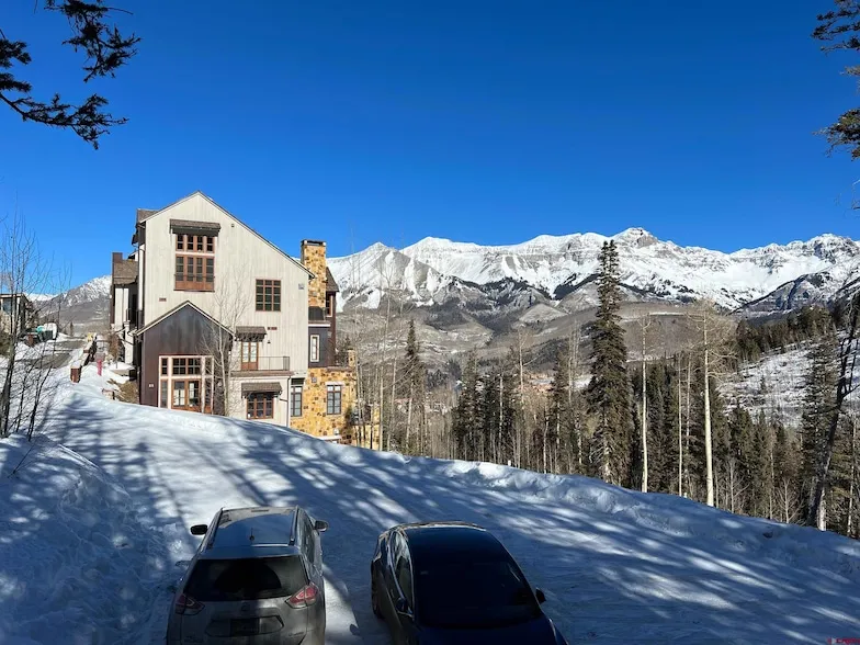 Extraordinary development parcel that can be accessed from Cortina Drive at the bottom and top of the lot. Great ski access from the top of the lot. Big views to the East from every level looking toward the San Sophia and Dallas Peak range and to the ski area. The lot has density for 3 condos. With HOA and Mtn Village approval, the density could be expanded to 4 condos. Or it could be an incredible single family lot.