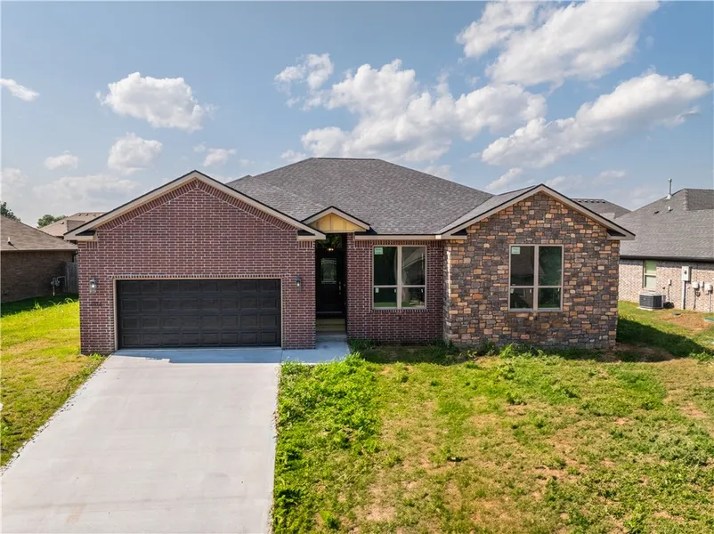 Bentonville Schools! Easy access to XNA Airport, JB Hunt, Walmart HO, and Tyson. New construction home with COO in the heart of Northwest Arkansas. This amazing brick home has a split floor plan with 4 bedrooms, 2 full baths and large walk-in closets. Oversized windows allow great ambiance and natural lighting throughout. Many custom additions to this home including granite counters, ceiling fans, utility sink in laundry, soft close hinges, lighted mirrors, security lights and great storage. Short commute to all of NWA and the 112 corridor will only make that easier. $5000 seller credit for upgrades or closing costs with preferred lenders.