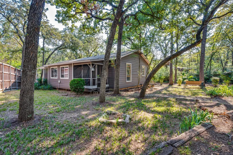 Lake Lewisville living right in the city! Experience a serene state park vibe with all the comforts of home and quick access to TWU, UNT, downtown Denton, and Lewisville! Only 45 minutes to downtown Dallas. Fully reimagined in 2021, this stunning lakeside cottage feels spacious and inviting. The property backs up to heavily wooded Corps of Engineers land for added privacy. Oversized gravel drive offers ample parking. Seller includes garage plans and will build with an acceptable offer. 2021 custom spa-like bath and chef's kitchen with gas range, plus climate-controlled loft storage. Two bedrooms, two baths, two living areas, an office nook, and two screened porches, fresh paint. Incredible storage, including a custom walk-in with a full-size stacked washer and dryer in the primary suite. Truly a must-see property! Appliances are gently used and convey. Zoned HVAC - central in main home, ...
