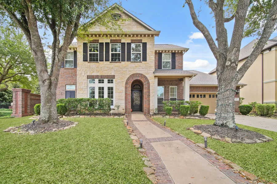 Beautiful home located in the prestigious Telfair subdivision! This spacious 5 bedroom, 4.5 bath residence offers a refined layout with upscale features. Enter into a luxurious foyer with high ceilings, beautiful cast iron staircase, solid hardwood stairs, & 3 custom chandeliers. The study has premium mahogany French doors. The family room has a stone wall to ceiling at fireplace with an Italian antique mantel. The chef's kitchen offers professional Thermador gas cooktop, double ovens and lots of cabinet and counter space. The oversized primary suite has Jacuzzi tub, large separate shower and double vanities. 1st floor also offers an in-laws or guest suite and sunroom. Upstairs you will find a large game room with balcony, media room with separate A/C and 3 large bedrooms. Plantation shutters and wood floors flow throughout home. Outback you will love a large, covered patio and huge backyard with privacy. Home backs to small park. ROOF REPLACED 10/25. Zoned to top rated schools.