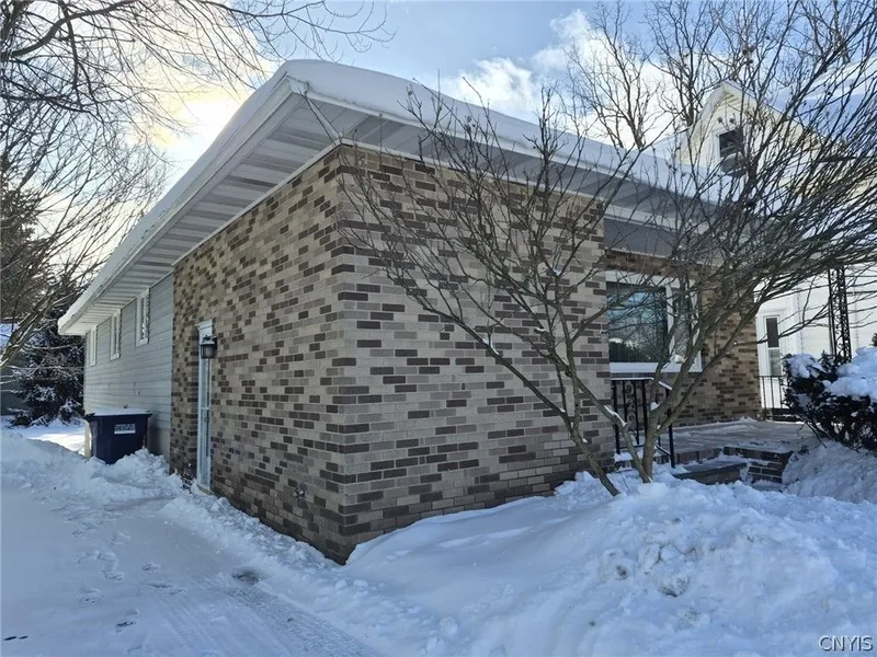 Spectacular custom Syracuse Northside 4 bedroom, 3 bathroom ranch with inviting covered porch, prominently visible from Grant Boulevard yet discreetly positioned on the low traffic offshoot. The front and side brick compliment the brick chimney & 2 ft overhang of hip roof. This home offers multiple points of entry. Step inside from the front porch into an enclosed foyer with generous coat closet with tile flooring to the bright 23 ft living room featuring an oversized picture window and 2 sided woodburning fireplace. Convenient from the flat driveway you enter the side door taking a left to the first floor OR a right to the walk-out lower level. The eat-in kitchen renovations include: maple soft close cabinetry, solid surface countertops, sleek black stainless appliances, recessed lighting & new flooring. The kitchen seamlessly flows to the dining area with view to the striking 2-sided wood burning fireplace shared with the sunken 23 ft living room with new carpeting is throughout the home. From the door off the kitchen & dining area you'll enter the hallway to a well-appointed bathroom and three bedrooms. Positioned at the end of the hall, the 19 ft x 12 ft primary suite with bathroom and walk-in closet overlooks the expansive private backyard providing a refined retreat within the home. Pella picture windows with enclosed pull down screens allow for abundance of natural light throughout this home. Brushed nickel lever door handles throughout. You'll appreciate the consistent temperature that only hot water boiler offers. Additional flexible square footage awaits in the walk-out lower level featuring 4th bedroom & full bath, a recreation / media / gym with second wood burning fireplace. Beyond is the unfinished - laundry area perfect for storage OR finish to your needs. Also, vicinity at bottom of stairs there is a separate area for cold storage. The seller requests that all buyers be pre-approved. This home is convenent to Transportation Center, Regional Market, NBT Stadium, Destiny Mall, Onondaga Lake and all major highways. Expect to be impressed upon viewing this property! Click on the Virtual Tour 3D to walk through the rooms on both levels.