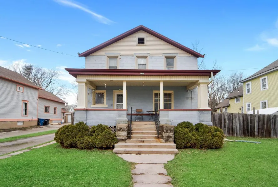 Investor opportunity! Currently being used as a 5 bedroom 2 bath single family home. Previously was a duplex and could be converted back without difficulty as there is a front and back entrance to the home. Duplex would offer a 2 BR and 1 BA on each floor. Sellers upgraded the laundry to upstairs. This room has the plug ins for stove and fridge as this was the previous kitchen. Fully fenced yard, RO System, shed in the back, and water heater replaced 2019. Bring your ideas to create this home into a duplex or keep as a large single family home. Exterior=concrete.