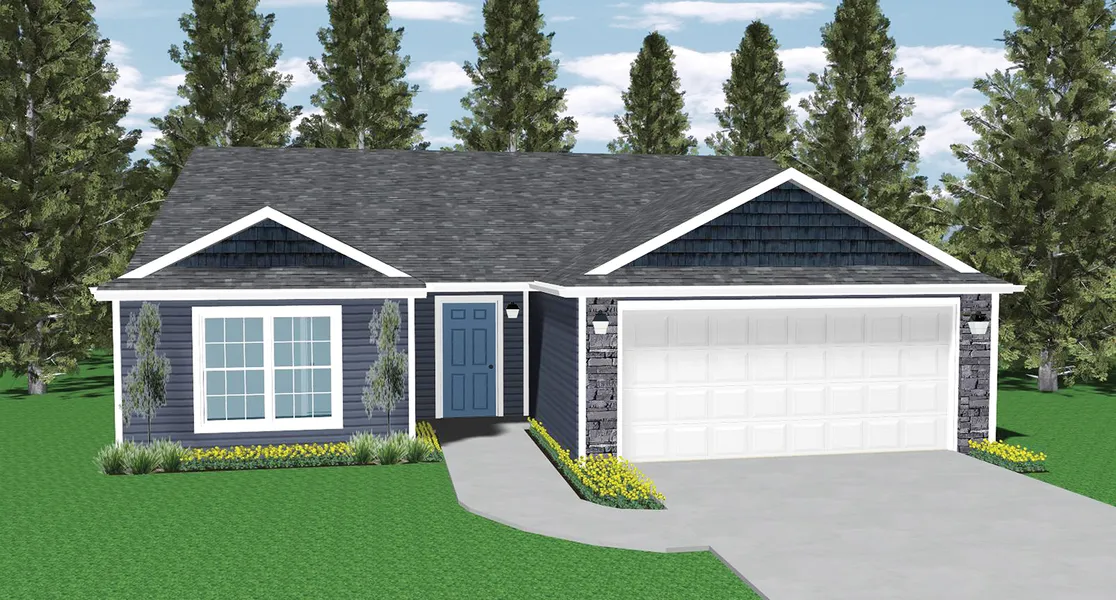 Home comes with: Microwave, smooth-top Stove, Dishwasher, Washer, Dryer and Fridge. (Last 3 are delivered after close of home) Lancia's easy care open floorplan the Jordan, at 1,314 sq.ft., is the larger version of the Wingate ranch. Great Room has cathedral ceiling with ceiling fan and faces the Nook and Kitchen, this is a very open plan! The 3rd Bedroom could be Office or Bonus Room. Kitchen has island with breakfast bar, ceramic backsplash, pantry, stainless steel appliances, smooth top stove, additional gas line hook-up behind stove are standard and soft close drawers. Sliding doors in Nook lead to 12 x 10 Patio. Owner Suite Bedroom off Great Room has ceiling fan, dual rod & shelf 1-wall unit in the walk-in closet and private Bath. Separate Laundry Room with closet off Garage. Designer white laminate wood shelving in all closets. Vinyl plank flooring in Kitchen, Nook, Pantry, Foyer, Baths and Laundry Room. Garage with 2' extension is finished with drywall, paint, attic access with pull-down stairs and has one 240-volt outlet pre-wired for an electric vehicle charging. Smart Home Technology - Control panel, up to 4 door sensors, motion, LED bulbs throughout, USB port built-in charger in places. 2-year foundation to roof guarantee and an in-house Service Dept. (Grading and seeding completed after closing per Lancia's lawn schedule.) ILLUSTRATION SHOWN FROM FOUNDATION STAGE UNTIL SIDING IN ON.