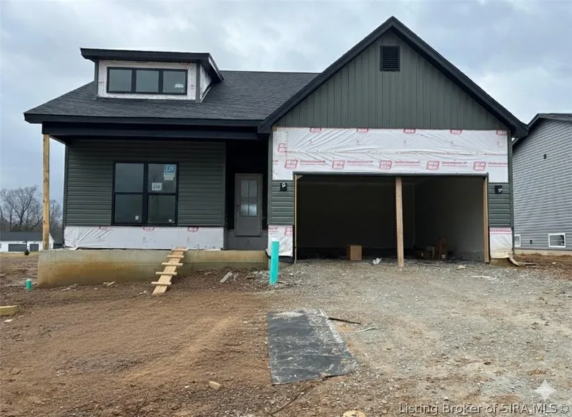 Schuler Homes' Independence Floor plan with a finished, daylight lower level! 4 bedrooms, 3 full baths, 2 car garage located in the desirable FAIRVIEW FARM subdivision conveniently located just north of Perry Crossing Rd in Sellersburg giving you easy access to Highway 31 and 60 and Covered Bridge Golf Community. You'll see why this is one of Schuler Homes top selling floor plans. The open floor plan is perfect for entertaining, featuring an in-wall fireplace with shelving and cabinets on each side, an inviting eat-in kitchen with a corner pantry, tiled backsplash, stone countertops, and an island for more seating. Enjoy stainless steel appliances, pendant lighting, and abundant natural light from large windows. The patio off dining area is perfect for enjoying peaceful evenings outdoors. The master suite offers a serene retreat with dual sinks, a linen closet, large walk-in closet and a beautifully tiled shower. The basement provides additional living space with a 4th bedroom, a 3rd bathroom, and a spacious family room, perfect for relaxation or hosting guests. Easy access to the mechanical room housing the Energy Efficient Water Heater and Heat Pump, plus the exterior walls are spray foam to help with the energy savings. SMART ENERGY RATED. The home will be ready for you to move into by mid May, just in time to start enjoying the great backyard! LOT 224. All measurements, listing details, sq. ft. are approximate. If critical, Buyer to verify.
