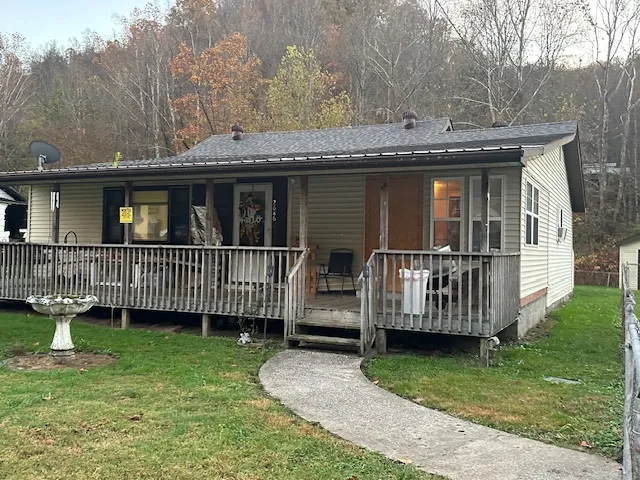 This ranch style home has 4 bedrooms and 2 full bathrooms, living room with gas log fireplace, large kitchen, the range and refrigerator will stay with home. The kitchen extends to the dining area. Lots of cabinets in kitchen. This home has a large laundry room, the washer stays with home. The 3.5 ton heat pump was installed in 2023. The roof is 5-6 years old, double pane double tile windows. Covered front porch and covered back porch, concrete sidewalks, fenced yard, storage shed, level yard, internet available, mountain view, above ground pool, detached garage, public water, public sewer, a few minutes from downtown Harlan