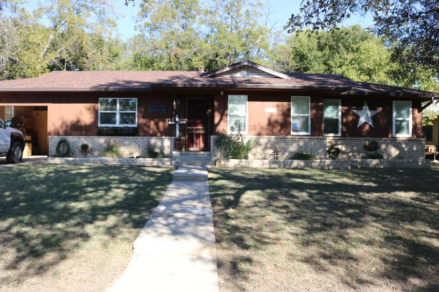 This lovely 3 bedroom, 2 bathroom home sits on 2 lots with a large, fenced backyard. The fence has a double gate that has access to the alley way. There is a portable metal building that conveys. The front and backyard both have beautiful shade trees. This spacious home has a large dining room and living area. The master en-suite bedroom has a large walk-in closet as well as a nice bathroom with large walk-in shower. The kitchen has ample cabinets and the range, refrigerator, and microwave also convey with the sell. In addition to the large laundry/utility room that has storage and clothes folding area and a commode, there is ample storage and closet space throughout the home. The home has central heat and air and gas range. This property is located in the sought out Goldthwaite school district. Give Ashley Deeds (325-998-3320) a call today to schedule a showing!
