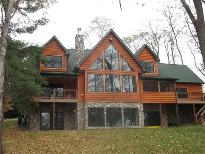 LAKE WALLENPAUPACK CONTEMPORARY LAKEFRONT-3 story, newly built, fully furn, contemp home. Boats inc. LR, formal DR, 2 mstr bath suites +4 BR. Total 4.5 baths. 1st lev mstr suite w/HC accessible bath + deck. Stone FP in lower level FR, lg kitchen w/SS appliances. Full finished basement, Zoned heating. Dock inc. Walkout 1st level to level lakefront lot. Wonderful views, great for entertaining!