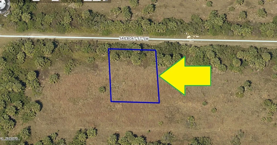 0.23 acre buildable residential lot available in Port Malabar Unit 49 of Palm Bay. Located in the southwest section, this lot is just 1.9 miles - 5 minutes to Westside Elementary School, 3.8 miles - 9 minutes to Publix Supermarket, 15.4 miles - 30 minutes to Melbourne International Airport, and 17.9 miles - 33 minutes to the beaches of Indialantic. From exit #176 of I-95 go west on Palm Bay Road NE for .7 miles, left on Minton Road for 3.3 miles, right on Jupiter Boulevard SW for .2 miles, left on DeGroodt Road SW for 2.5 miles, right on Osmosis Drive for 1.0 mile, left on Madden Avenue for .5 miles, and left onto Sailboat Street. The lot will be on your right.