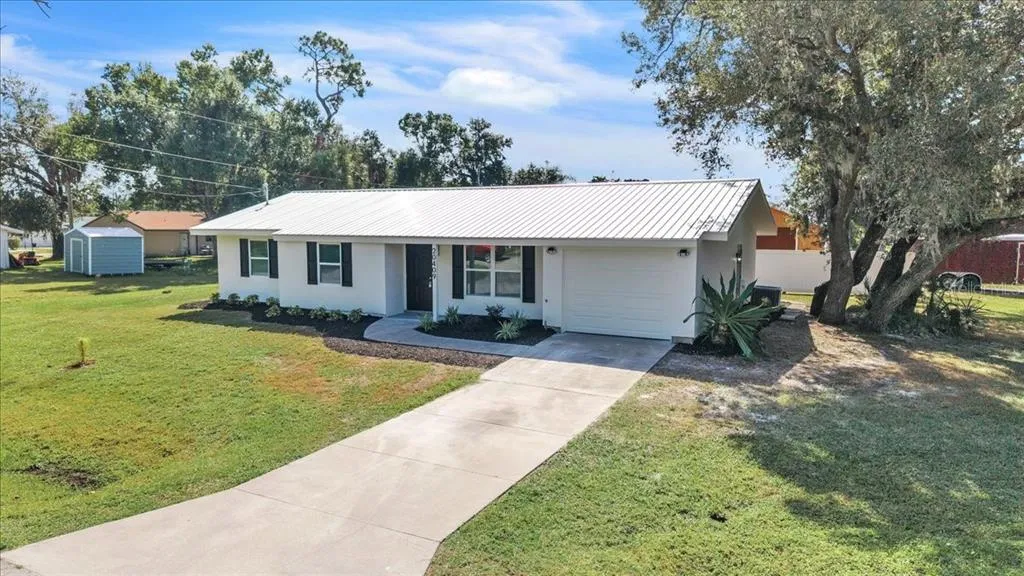 One or more photo(s) has been virtually staged. Discover the perfect blend of style, comfort, and peace of mind in this beautifully fully renovated 3-bedroom, 2-bath corner-lot home in a NO FLOOD ZONE ready for your next adventure. From the moment you step inside, you'll notice the attention to detail and quality craftsmanship throughout. The open and inviting layout features luxury vinyl plank flooring, and fresh interior and exterior paint. The modern kitchen offers NEW CABINETRY, LEVELl 3 GRANITE countertops, and NEW STAINLESS STEEL appliances, creating a perfect space for entertaining or everyday living. Both bathrooms have been elegantly updated with matching granite and stylish fixtures, offering a cohesive and contemporary feel. Outside, the corner lot provides extra yard space and curb appeal, with CITY WATER and CITY SEWER (expansion paid in full) ensuring long-term value and convenience. Major upgrades include all-NEW PLUMBING throughout, new electrical interior and exterior, new electrical panel, NEW A/C system, NEW METAL ROOF and all new IMPACT-rated WINDOWS, exterior DOORS and GARAGE DOOR offering energy efficiency, lower insurance costs, and peace of mind. Contractor if offering a HOME WARRANTY! Ideally situated near shopping, dining, top-rated schools, and the Port Charlotte Beach Park, this home is truly move-in ready and built to last-a stunning property with every modern upgrade already done for you.