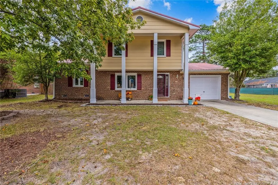 Welcome Home!A large front porch leads you into a welcoming foyer, which opens to a formal living room and formal dining room perfect for entertaining. The kitchen features quartz countertops, an island, stainless steel appliances, and a breakfast area with bay window. Just off the kitchen, you'll find a den with a cozy fireplace and a convenient half bath/laundry room. Upstairs, the primary bedroom includes an updated en-suite bathroom, along with two additional guest bedrooms and another updated full bath. This home has no carpet throughout. New Laminate flooring was just installed upstairs. easy to maintain and allergy-friendly! Outside, enjoy a large, fenced backyard with a patio and storage shed. Metal roof!Conveniently located close to shopping, restaurants, and Fort Bragg, this home checks all the boxes!