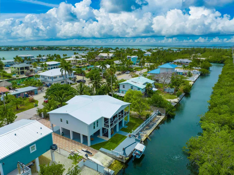 Stunning Canal Front living with enviable boating in desirable Sugarloaf Shores! This home has it all, sprawling square footage with tasteful upgrades on a sizeable lot with proximity to great boating. A bright, open-concept main living space greets you upon entry. European influence adds warmth and vibrance to space, while modern finishes provide an elevated, comfortable island lifestyle. The chef's kitchen comes equipped for all culinary prowess, featuring a spacious island with counter seating, stylish bronze sink and vent hood, modern white cabinetry, pot filler, ample prep- and storage space, and top-of-the-line Miele Appliances. The spacious split floor plan affords exceptional accommodation between two generous guest bedrooms and a well-appointed primary suite, with rare walk-in closet. For the ultimate luxury experience, the en suite bathroom retreat comes complete with clawfoot tub and oversized glass steam shower and boasts private access the balcony. Additionally, a substantial back balcony provides the perfect backdrop for enjoying the warm summer breeze while sipping cocktails at sunset. Downstairs, a covered outdoor living space comes equipped for entertaining with a striking blood cypress bar serving as the focal point of the space. Approximately 80 feet of concrete dock with davits and kayak launch makes for easy access to infamous fishing and diving within minutes, and two bubblers allow for carefree maintenance of your pristine canal! Indulge in a variety of local fruit trees such as coconut, guava, banana, key lime, and many more. Enjoy ample paved parking and storage on this 10,050 sq ft lot, while lush native landscaping provides privacy and seclusion from the outside world. Your own slice of paradise is in store at this Sugarloaf Shores sanctuary. Schedule a showing today!