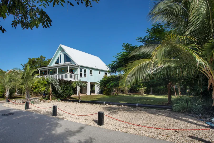 Bright and spacious Big Pine Key retreat on an oversized lot, surrounded by lush tropical landscaping. This spectacular listing is flooded with natural light and packed with character, with an airy open-concept floor plan and soaring ceilings with an exposed wood beam. The heart of the main living space is a well-equipped Chef's kitchen, complete with quartz countertops, stainless-steel appliances, glass tile backsplash, and kitchen island with seating. Enjoy two fantastic options for the primary bedroom, a spacious main floor bedroom with en suite or a private upstairs loft bedroom with its own balcony. An additional guest bedroom and full bathroom provide comfortable accommodation for visitors. Two sets of French doors lead out to a spacious open porch, overlooking the well-manicured yard below, the perfect backdrop for morning coffee. The downstairs carport offers shaded space for par...