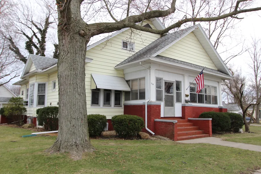 Great corner lot that is close to schools, parks, civic center and shopping! Step inside to a spacious living room with custom woodworking featuring a bedford stone fireplace. large eat in kitchen with appliances and laundry, 2 bedroom, 1 bath plus storage area on main level. Upstairs and lower level both have outside entrances that can be used as rental income. They both feature full kitchens, baths and plenty of living space. An entertaining front and back porch, 1 car garage and storage shed make this home everything you've been waiting for! Call today to make it yours!