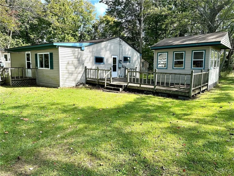 With a little work, this two-bedroom, one-bathroom getaway can become your dream escape retreat. Featuring an open floor plan that seamlessly connects the kitchen and living room, this space is ideal for entertaining. Step from the kitchen to an inviting enclosed front porch, perfect for enjoying lazy afternoons. The large side deck offers stunning views of Lake Ontario, and it leads into an enclosed gazebo—an oasis for relaxation. The property also includes a convenient storage shed in the backyard, providing ample space for all your summer gear. Sitting on two lots totaling 108 x 200, you’ll enjoy just under half an acre of your own paradise. Recent updates include interior painting, four electric heaters, and a 200 amp breaker box service, ensuring comfort and efficiency year-round. The property does have Right of Way access to the lake.