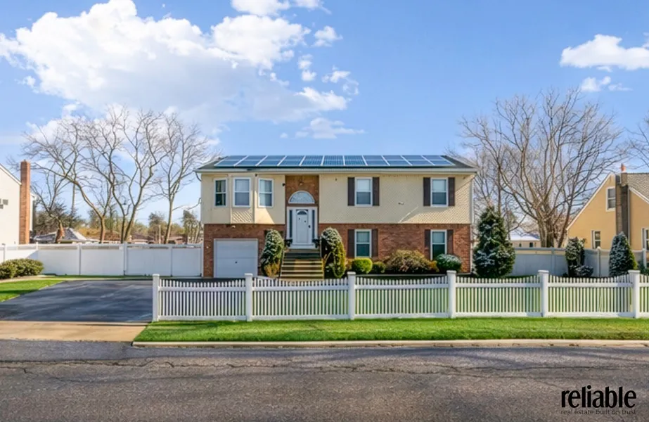 Thoughtful design details include hardwood floors, high vaulted ceilings, and a refined living room/dining room combination that enhances both everyday living and entertaining. Additional highlights include upgraded electrical, solar panels, and a full security camera and alarm system. The home offers a huge backyard with outstanding outdoor space ideal for entertaining, gardening, or relaxing, complemented by a private garage and parking for up to eight vehicles. Conveniently located near schools, parks, bus service, and the Wyandanch LIRR station, this property delivers space, functionality, and elevated suburban living.