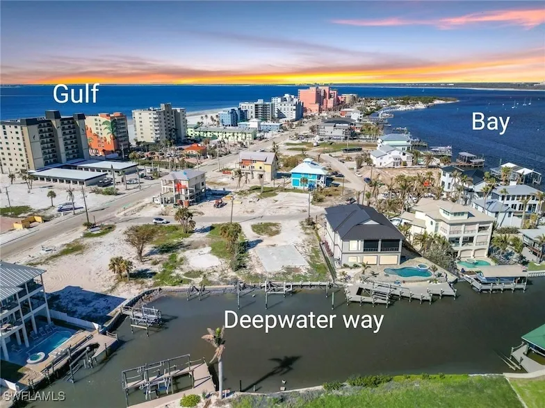 BEST WATERFRONT LOT FOR SALE ON NORTH END! IMMEDIATE GULF ACCESS, BAYVIEWS, AND STEPS TO THE BEACH from this large lot on the sought-after North end of Fort Myers Beach, on a semi-circular street. Nestled among some of the finest and largest homes in the area. 80' Of waterfront on the widest, deepest canal, great for large or deep draft sailboats. Permitted tie off pilings are in place. This is the closest deep-water canal to the Federal channel & Gulf of Mexico, enabling you to avoid endless idling in no wake zones to achieve open waters. Approximately 80' x 130', per survey. Dolphins and manatees are frequent visitors to this tranquil canal. You will have views of the Bay and the intersecting canal. There will be little to no traffic at this ideal location, even during season. Lot size means fewer, if any, permitting, setback, water retention or grandfathering issues when planning to build. Captivating Bay views by day and magical evenings with sunsets to the west over the Gulf. Only a quick walk to the beach access will bring you onto the powder sand beach to enjoy. Sunrises, full moons, fireworks and space craft launches can all be seen from here! Short walk to Times Square and Bowditch Point Park. Well-built seawall with no steel to rust or corrode. Located in a weekly rental zone for owners that want to rent out their properties. This treasured property has been in the same family for nearly 40 years. Don't miss out on this unique opportunity today!Duplex construction may be permitted under present Town regulations, buyer to make any inquiries to the Town and an Offer contingent upon Town verification may be considered.
