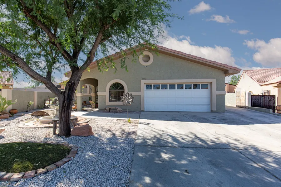 Welcome to your dream home in the heart of Las Vegas, NV 89107! This stunning one-story residence boasts a beautifully landscaped front yard leading to a cozy, covered entryway. Inside, discover a spacious and inviting layout featuring high vaulted ceilings, exquisite tile flooring, and ample natural light throughout. The gourmet kitchen excels with rich wooden cabinetry, granite countertops, a large island, and stainless steel appliances, perfect for any culinary enthusiast.