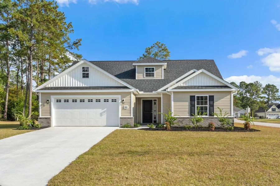 Welcome to 800 Stone Pine Court, a beautifully crafted 3-bedroom, 2-bath home nestled in the peaceful Woodland Valley golf community near Diamondback Golf Course. Built by a respected local custom builder, this thoughtfully designed residence showcases quality craftsmanship and upgraded finishes throughout. An inviting front porch opens to a spacious foyer that flows effortlessly into the open-concept great room, creating a warm and welcoming atmosphere. The custom kitchen overlooks the main living area and features solid surface countertops, stainless steel appliances, and a generous island with counter-height seating—perfect for entertaining or casual dining. A dedicated dining area provides an ideal setting for gatherings. The private primary suite offers a relaxing retreat with a tray ceiling, an expansive walk-in closet with custom built-ins, and a spa-like ensuite bath complete with dual sinks, a custom quartz vanity, and a separate shower. Two additional bedrooms and a full bath are conveniently located near the main living spaces. Enjoy outdoor living year-round on the covered patio overlooking the beautifully landscaped backyard. Additional highlights include luxury vinyl plank flooring throughout, a spacious laundry room, and a two-car garage. Move-in ready and ideally located, this exceptional home offers comfort, style, and convenience in one desirable setting.