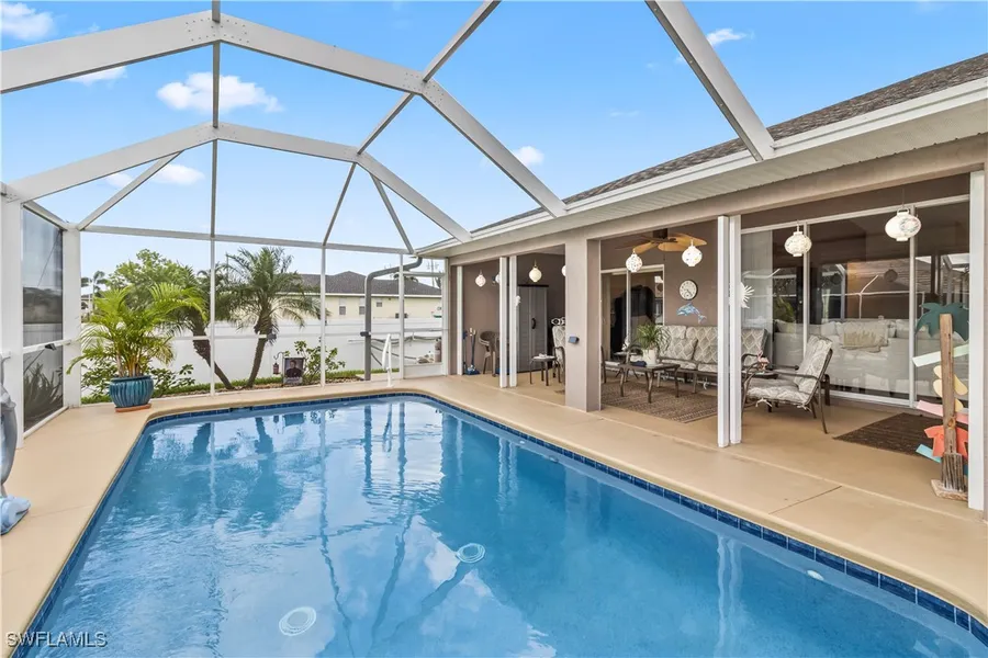 HURRICANE-READY & BEAUTIFULLY UPDATED! Nestled in a peaceful SW Cape Coral neighborhood, this 3-bedroom + den/flex room, 2-bath pool home is the perfect blend of comfort, functionality, and modern upgrades. Inside, enjoy a split floor plan, spacious indoor laundry, and newly remodeled bathrooms, including a handicap-accessible master suite designed with care and convenience in mind. The kitchen shines with brand-new stainless steel appliances, while the newer HVAC system and new pool pump provide peace of mind. Outdoor living is a dream with a completely refreshed backyard, new PVC privacy fence, and screened pool lanai with a brand-new cage and roof (post-Ian) — ideal for relaxing or entertaining. Safety features include 3 new hurricane-impact windows, roll-down shutters, and no outstanding assessments. With vacant lots on both sides, enjoy extra privacy and room to breathe. This home i...