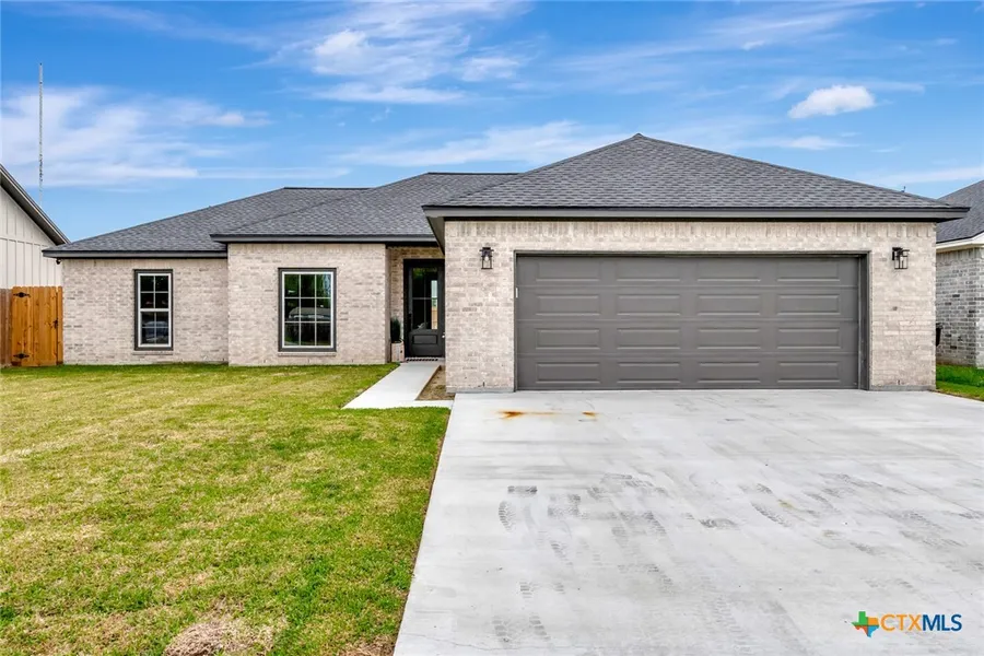 This magnificent home, crafted by RCR Homes, exudes modern comfort and style with its spacious open-concept design. Boasting three bedrooms and two bathrooms, the home captivates with its large living area bathed in natural light from floor-to-ceiling windows. The island kitchen stands out with quartz counters, custom cabinets, and stainless steel appliances, perfect for entertaining or daily family meals. The luxurious primary suite offers a spa-like retreat, complete with a double vanity, a walk-in shower, a relaxing soaking tub, and a generous walk-in closet. Conveniences abound, including an indoor utility room with a drop zone area for effortless organization. Step outside onto the covered patio, overlooking a private, fenced backyard ideal for relaxation or play.