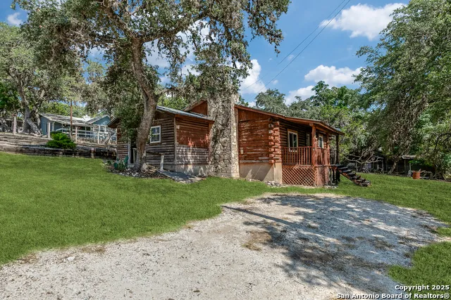 Rustic charm and endless potential meet in this 2-bedroom, 1-bathroom log cabin tucked among mature shade trees in the peaceful Pebble Beach community. With Medina Lake access just moments away, this property offers a rare opportunity to create your own lakeside retreat or invest in a desirable location. The classic log cabin structure is brimming with character and ready for your personal touch. Whether you envision a full renovation to make it your dream home, a cozy weekend getaway, or a profitable vacation rental, the possibilities here are wide open. Set on a tranquil lot surrounded by nature, the cabin provides the perfect canvas for a private escape. Imagine mornings on a future deck with coffee in hand, afternoons spent at the lake, and evenings under a sky full of stars. As part of the Pebble Beach community, you'll enjoy access to Medina Lake's recreational activities, including fishing, boating, and swimming-all just minutes from your front door. For those with vision, this fixer-upper is more than a property-it's an opportunity to build a lifestyle in one of the Hill Country's most sought-after lake communities.