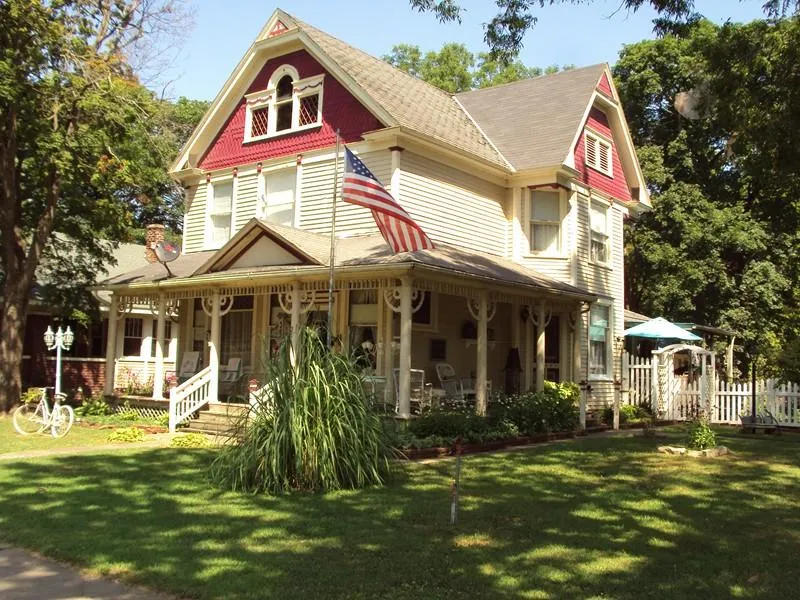 Corner location with mature shade trees surrounding this ornate Victorian beauty. Tasteful, period restoration, plus modern kitchen. Also has commercial kitchen with 3-sink stainless unit & D/W. Has been used as B&B. Most original woodwork,French doors, ornate fireplace in parlor, claw-foot tub. Charming from front to back. Good closet space and storage.