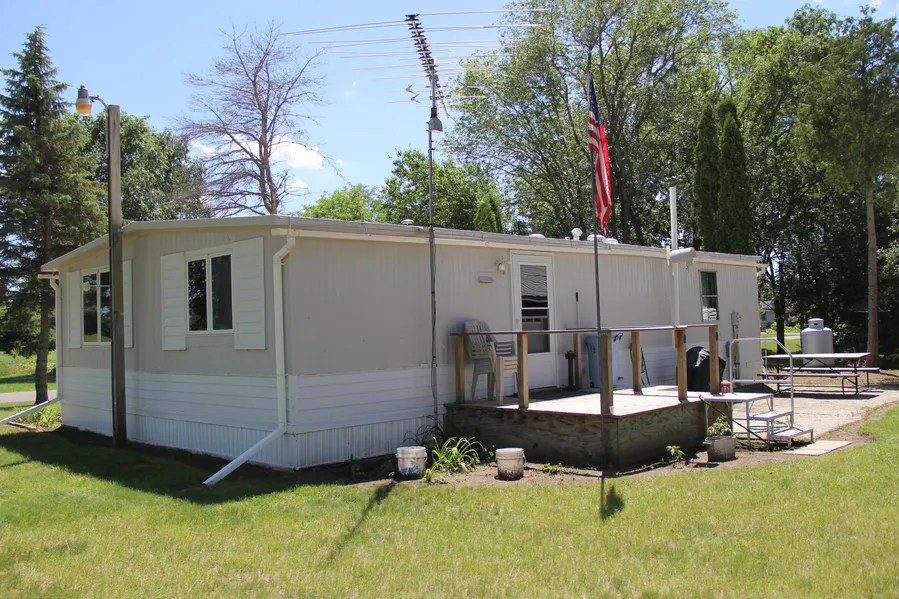 This is a double wide mobile home on 2 lots, 2 BR, 2 BA, kitchen, dining area, LR, laundry room, newer windows, front door guest closet, newer windows, storage Bldg., gas furnace & gas stove, CA, Electric water heater, 100 amp box, sewer septic tank & drain field, 8x9 deck. Appliances & many furnishings included. Ha a 1+ car garage w/loft storage & lean to for boat etc. Great summer home, close to the river. Move in ready! A great buy!