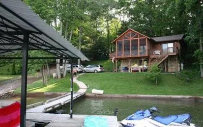 LAKE CHATUGE HOME! Darling chalet w/huge screen porch, double covered dock, 2 finished levels, 3BR/2BA, garage, paved parking, gas logs, fireplace, fully furnished. $549,900 (159463) Hayesville, NC