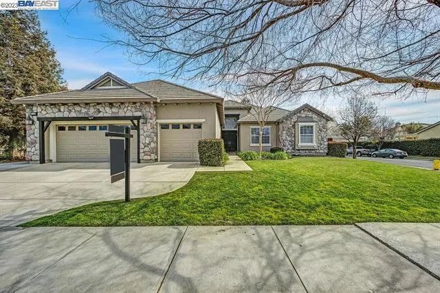 Welcome, Home!!! This Sterling Preserve beauty located on a corner lot offers an abundance of space including 4 Bedrooms, an Office/Den, 3 full bathrooms, 3 car garage, living & family rooms, a sparkling heated swimming pool, energy efficient solar panels, central heat/air, vinyl flooring, surround sound in the family room, fresh two-tone interior & exterior paint, cozy gas burning fireplace, tankless water heater, water softener & dog kennel. An open and airy kitchen ideal for entertaining features cabinets galore, a breakfast bar, stainless steel refrigerator, a double oven, and more. An inviting master room with a master bath, double sinks, relaxing tub, walk-in closet, and patio doors just a step away from the enticing pool, awaits you. Make this desirable Brentwood neighborhood your own, a wonderful place to raise a family or enjoy retirement life!