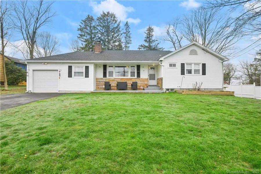 As soon as you enter this well maintained Ranch style home with attached one car garage you will feel at ease. With gleaming new hardwood floors in the living room and a new wood pellet stove with added hearth you will enjoy your cooler nights when your not spending your summer days at the private beach at Ball Pond. The easy flow kitchen with lots of natural light offers a built in dining area, stainless steel appliances and updated light fixtures. Step down to the recently renovated bonus room with new hardwood flooring and a unique nook that would be great for storage or a cozy reading nook. The French doors lead out to your freshly painted back deck and beautiful yard. The level lot offers a shed for garden tools and a great stone firepit area! Two spacious bedrooms are located down the hall both with ample closet space. With the 700+ square foot finished basement the possibilities are endless! This finished space is currently used as a recreation room that offers waterproof vinyl flooring, tons of storage and recess lighting. To finish the lower level off you will find your mechanicals such as a brand new boiler installed in Feb. 2022, a newer water softener and newer washer and dryer. With so many updates made all you have to do is move in and relax! This home is ready for Summer fun!