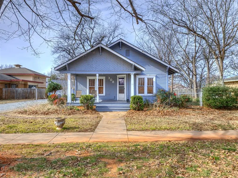 **New exterior paint** Updated historic home in Lindsay. This charming 3 bedroom, 1.1 bathroom home in Lindsay is nestled on 2 lots and features loads of improvements. You are welcomed by a spacious front porch that has plenty of room for a porch swing or table and chairs to enjoy some peace and quiet outdoors. Through the front door you find the main living area and large formal dining room that offer a seamless flow for entertaining as well as the comfort of home. The historic character of the home has been preserved with modern touches added throughout. The 2 secondary bedrooms bolster the full hall bathroom and sit on the side of the home off the dining area. Both are spacious and feature ceiling fans and closet space. The large updated kitchen sits on the back of the home and has ample cabinet and counter space, stainless steel appliances, a gas stove, dining area, and laundry. The primary retreat is located down the hallway off the kitchen. It is large enough for a king size bed, sitting area, large furniture pieces, and features a half bath ensuite. The massive backyard has an in ground storm shelter, is perfect for the master gardener, furry friends to roam, games of tag or ball with the kids, and cookouts with friends. This adorable home is ready for a new family to make lasting memories of their own.