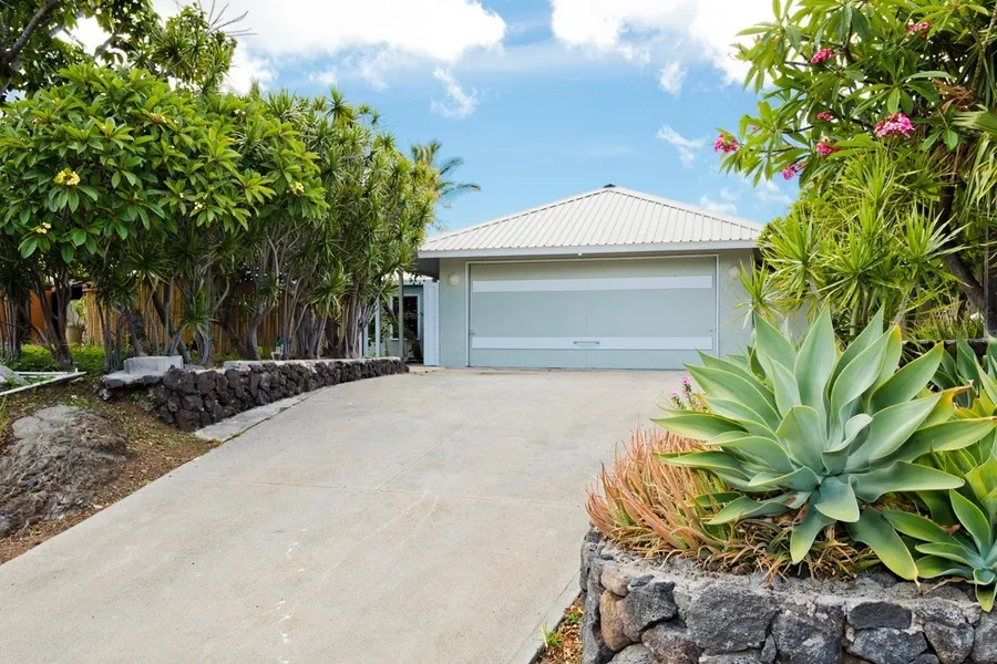 This newly refreshed home wont last long and provides a great single-level floor plan including 3 bedrooms (or 2 attached bedrooms and an office), and 2 bathrooms, plus the all-important open kitchen, wet bar, living and dining room. The un-permitted walled-in front and back lanais create additional square footage not noted on the county records...extra office space, childs playroom, and/or mothers suite? The spacious kitchen features granite counter tops and plenty of room for eat-in dining. The front and back yards have been updated for easy maintenance and include a sprinkler system, one-of-a-kind Jacuzzi with built in speakers, and a built-in BBQ. Enjoy a nice distant view of the azure waters of the Pacific Ocean from the kitchen, living/dining area and backyard! This property is situated to offer natural cooling temperatures from trade winds as well as mature trees and shrubs! A wonderful full-time OR second home. Move-in ready, add your own creative touches.