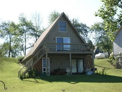 Motivated Seller - Will consider all offers. All-Sports Lakefront Home! 60 Feet of lake frontage. 3 bedrooms / 2 baths. Full walkout finsihed basement with kitchen, family room, bedroom, full bath and utility/storage area. Main floor features wood floors and updated carpet, living room with cathedral ceilings, sliding doors to deck, full bath, bedroom and half kitchen. Also large bedroom loft! This home can sleep 12+ people ! Well maintained! All furnishings included. Immediate Possession!