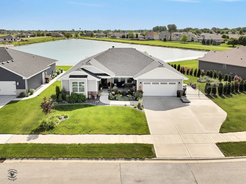 Luxurious lakefront living 55 miles South of Chicago! Just minutes from I-57 this custom upgraded ranch Draper Model offers a gorgeous setting for all seasons. The grand open floor plan is perfect for hosting holiday parties or casual get togethers. The outside entertaining space features a custom deck and privacy screen, paver patio, wrought iron fencing, plus a lakeside firepit all on an oversized lot. An additional 12X14 could accommodate an RV or boat. Custom kitchen with coffee bar, white cabinetry, butcher block, granite countertops, subway tiled backsplash, stainless appliances, breakfast island & pantry. Great room with cathedral ceiling and beautiful fireplace. The custom en suite has a spa-like bathroom that is perfect for relaxing and pampering yourself. Custom closets and hardwood flooring throughout. Split floor plan with a full basement. Office could also be a 4th bedroom or den. Covered front porch for kicking back and watching the sunset. 1st floor laundry with wash sink. The extra added design elements make this home a showstopper and a perfect place to call home. Call today!