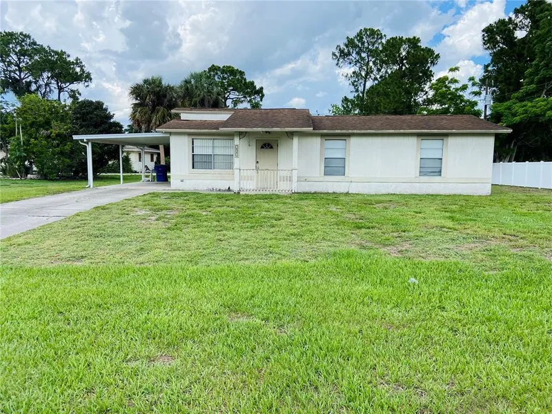 Take a look at this cute and cozy home in Lehigh Acres. Great opportunity for a first time homebuyer, or investors looking to add a new rental property to their investment portfolio. This property features 3 bedrooms, 2 full bathrooms and a carport. The primary suite has a walk in closet, the primary's bathroom has tile flooring with a step in shower. Both guest bedrooms feature wall closets, and the guest bathroom features an updated vanity with a step-in shower tub combo. The kitchen boasts solid countertops, wood cabinets, and matching appliances. Nice size yard with a fire pit, storage shed, as well as a storage room behind the double French doors. Screened lanai enclosure. No flood zone, no HOA or deed restrictions. All the must have amenities nearby! Contact me today for a home tour!