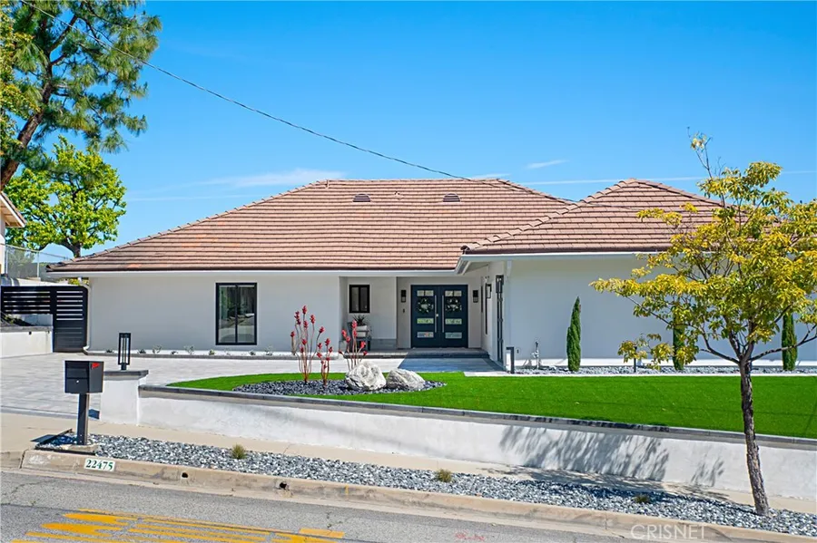 Lovingly remodeled in 2022 by designer- owner. A journey through this exquisite residence is evocative of the very finest in art and architecture in any luxury home. No expense was spared in the implementation of the finest finishes and design. Upon your arrival you are greeted by the beautiful drought tolerant landscaping with faux turf and custom iron sculptures, paver driveway and expansive front entry. The owners have redesigned and created a light and bright open floorplan with spectacular views. Throughout the home there is recessed lighting with dimmers, custom solid wood cabinetry, new windows and doors, solar shades, luxury vinyl plank flooring, quartz countertops, and under counter lighting. The living room with double door entry has a Fire and Ice gas fireplace with porcelain tiles and custom heavy beam wood mantel. Architectural Digest kitchen with superior Dacor appliances and finishes, features a massive Caesarstone Quartz island housing a six-burner range with 2 ovens, griddle plus additional storage. The family room has a built-in bar with Reed Glass Cabinetry, and wine refrigerator. There are four bedrooms, one is being used as an office with built-in cabinetry and shelving. All bedrooms have ceiling fans and walk-in closets with custom built-ins. Primary Bedroom has barn doors to bathroom featuring custom Rift Oak vanity and linen closet, porcelain tiled walls and shower. All bathrooms have LED mirrors, quartz countertops and Newport Brass faucets and tub/shower components. One guest bath has a custom blend marble flooring. The other bath features barn doors. The backyard is perfect for entertaining with expansive views of the valley and mountains. Enjoy sitting at the built-in BBQ Center featuring a Lynx BBQ with Trident Heating, 42" gas grill, storage and trash bins. Large brick patio and lawn. The laundry room has quartz countertops, sink and custom cabinets. Already wired for two electric cars, this state-of-the-art garage features epoxy flooring, finished walls, pull-down ladder to additional storage, and beautiful new garage door with Lite Privacy Inserts. Located in the highly desirable Mulwood neighborhood and much sought after award-winning LVUSD School District. Close to beaches, shopping and hiking trails. Beauty, Elegance, Community, Lifestyle. . . It can be yours. PLEASE VIEW SUPPLEMENT FOR MORE INFORMATION ON UPGRADES AND AMMENITIES.