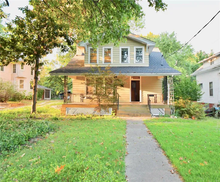 Charming Bungalow near schools and shopping in desirable area. Front porch features a welcoming porch swing. Step in the front door to a spacious foyer and immediately can see the living room fireplace with built-in bookcases, stained glass windows, and display cabinets. Home features original wood floors and woodwork in the large living and dining room. Kitchen has all the convenient appliances and ample countertop space. Adjacent sunroom is a perfect spot to relax and includes a 1/2 bath. Large deck overlooks fenced tree shaded back yard. The second floor has three bedrooms and a spacious full bath. Basement has a finished office area and unfinished laundry area. One car garage is tucked under the house and has a side entry.