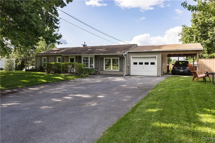 Welcome to the ease of one level living! This flat ranch in the lovely Scenic Heights subdivision is conveniently located just off Rt. 5 and so close to Canastota schools and shopping. Situated on a large corner property, it features a double lot with beautiful fruit trees, (apple, cherry), grapes and lilacs on the property. And it's partially fenced for privacy. Enjoy the spacious patio area in the back yard and a separate, fully fenced area for play and/or family pets. There's a 1 car garage plus a large carport. Step inside to find lots of open, bright spaces. The main living room leads to a formal dining room (presently used a 2nd family room) and the renovated kitchen with stainless appliances. The washer and dryer (buyers to bring their own) are conveniently located in the kitchen and the refrigerator was cleverly recessed to add more space. Just off the kitchen is a wonderful fami...
