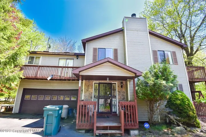 Truly exceptional opportunity to own this 6BD/2BA contemporary style home located in a gated, amenity-filled, lakeside community that allows Airbnb! Perfect for a primary, secondary, or investment property! Located on a cul-de-sac! This home features a functional floor plan, boasting a living room, eat-in kitchen, full bath, and two bedrooms (including the primary bedroom) on the first floor. On the second floor, you will find four bedrooms, a spacious second living room, and a full bath. You'll enjoy being in the tranquil backyard which boasts a large wooden two-story deck and a yard with mature trees to enjoy nature. SOLD AS-IS, fully furnished. Within minutes to all major Pocono attractions and shopping. You'll also enjoy a spacious 2-car attached garage for extra storage.