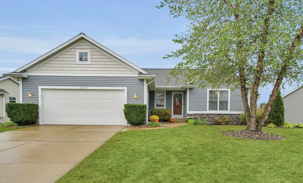 Beautiful three bedroom daylight ranch with deck overlooking the water in Dewpointe East. Great open floor plan with cathedral ceilings. The kitchen features slate flooring, a tiled back splash, and central island with seating for four. The daylight level is framed for a future family room and 2nd bathroom. Wonderful value with expansion opportunity.