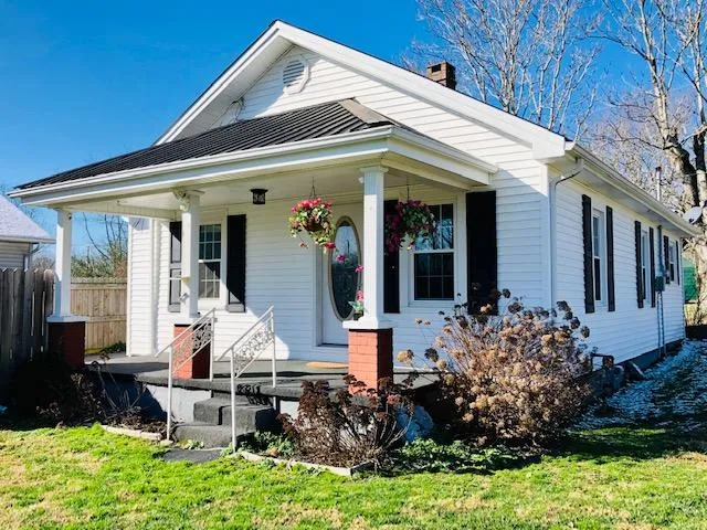 This super-cute home appears move-in ready and offers many updates with a convenient location near downtown Russell Springs. House has two bedrooms, one large updated bathroom/utility room combination, large eat in kitchen with lots of cabinets and appliances, formal dining room with gas log fireplace, nice living room, covered front porch and side concrete patio courtyard with privacy fencing and 8ft. x 12ft. storage building with double lofts. House has numerous updates including central heat and air, double pane tilt windows, newer metal roof, nice flooring throughout, city water, city sewer and more! Affordably priced call today!
